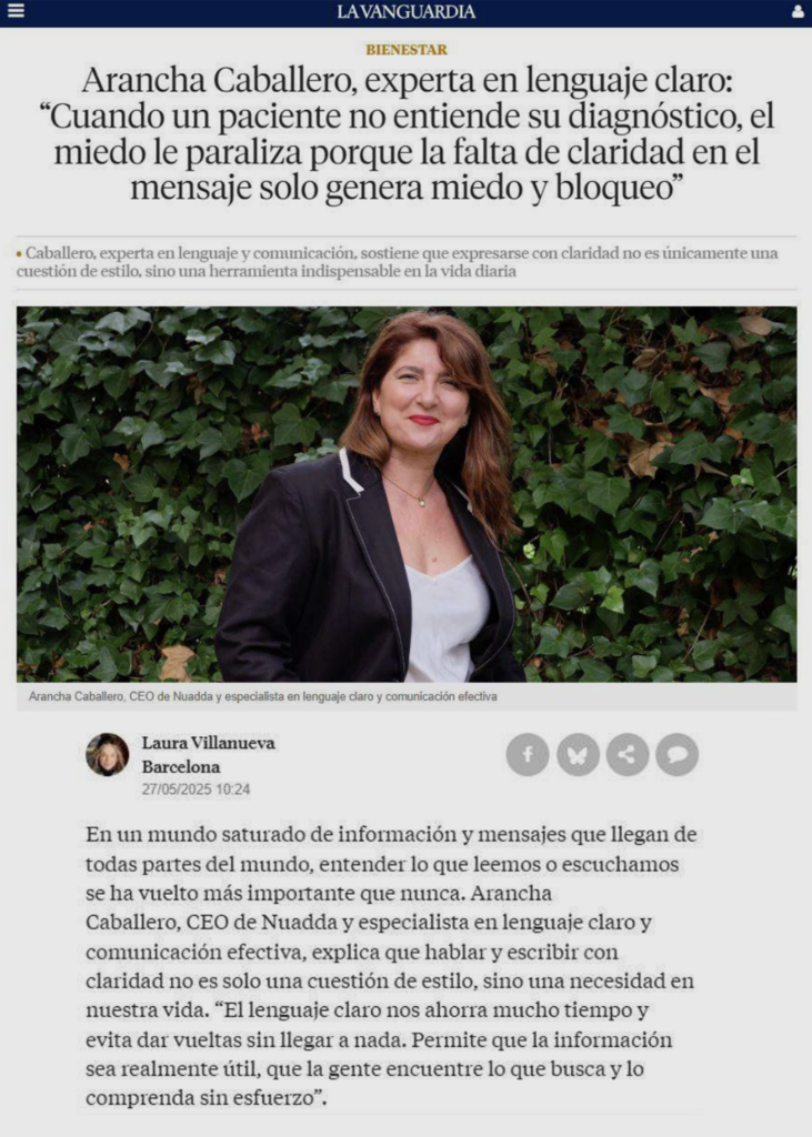 Arancha Caballero, an expert in clear language: "When a patient does not understand his diagnosis, fear paralyzes him because the lack of clarity in the message only generates fear and blockage"